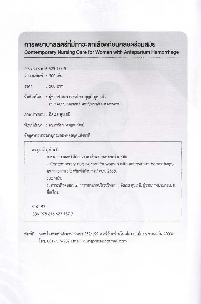 การพยาบาลสตรีที่มีภาวะตกเลือดก่อนคลอดร่วมสมัย = Contemporary nursing care for women with antepartum hemorrhage