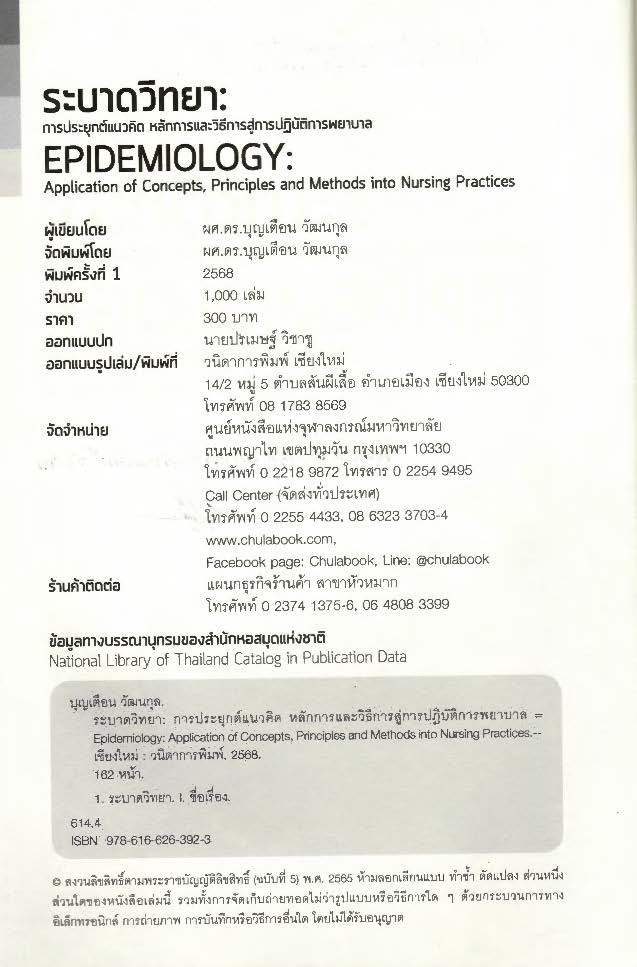 ระบาดวิทยา : การประยุกต์แนวคิด หลักการและวิธีการสู่การปฏิบัติการพยาบาล