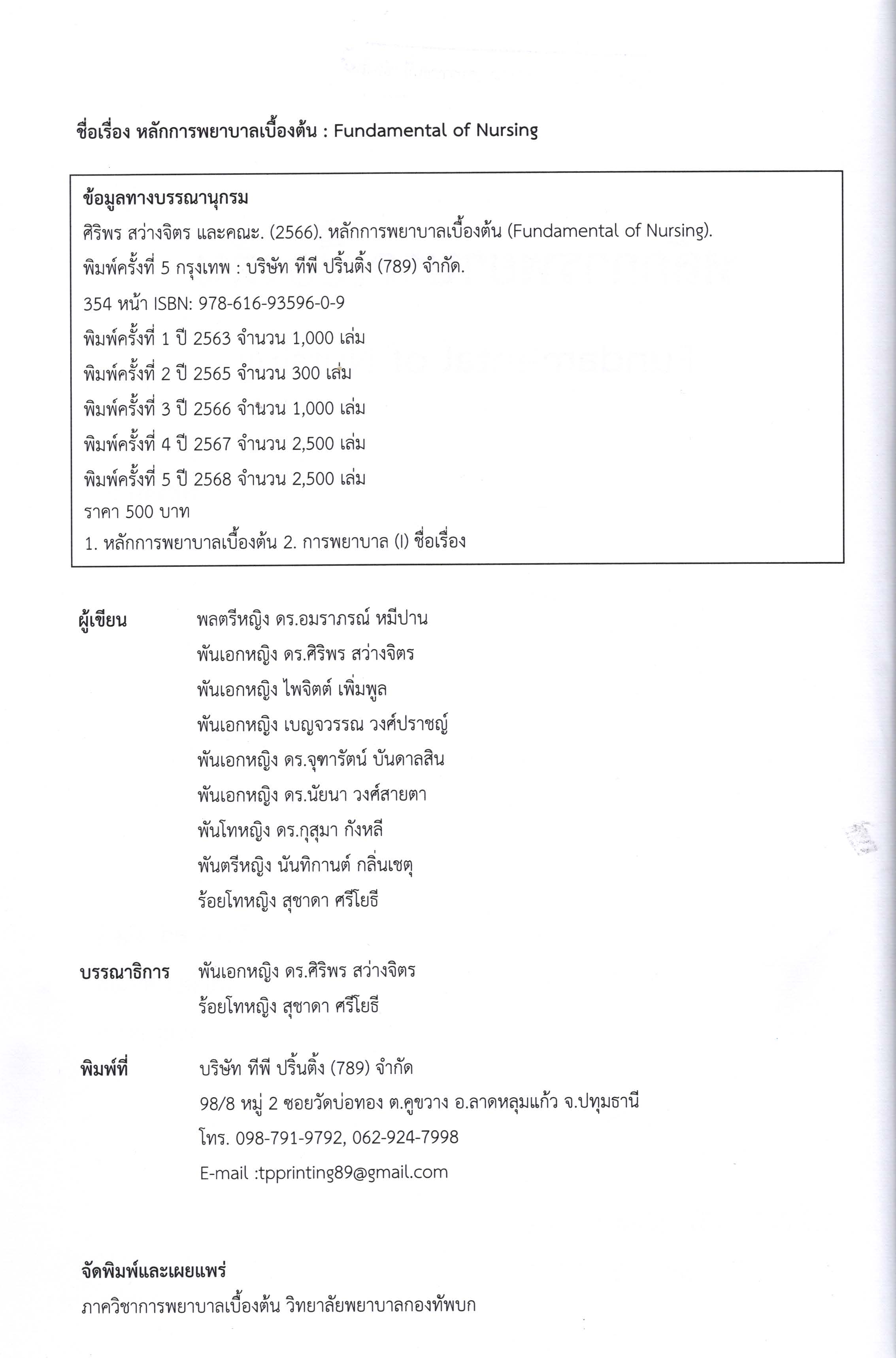 หลักการพยาบาลเบื้องต้น = Fundamental of nursing