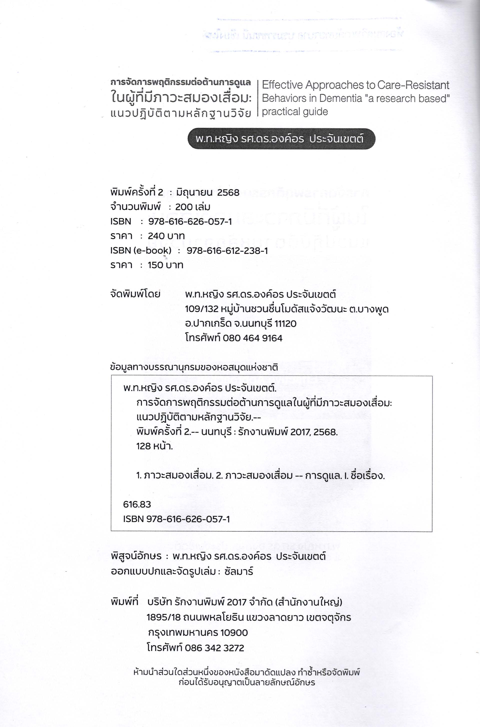 การจัดการพฤติกรรมต่อต้านการดูแลในผู้ที่มีภาวะสมองเสื่อม : แนวปฏิบัติตามหลักฐานวิจัย