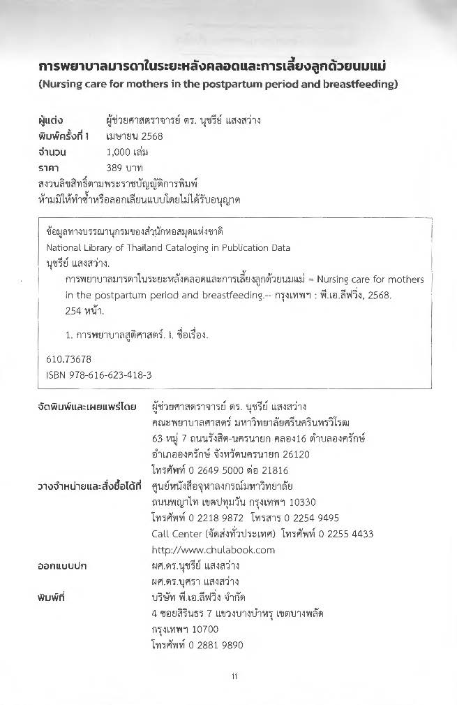 การพยาบาลมารดาในระยะหลังคลอดและการเลี้ยงลูกด้วยนมแม่ = Nursing care for mothers in the postpartum period and breastfeeding