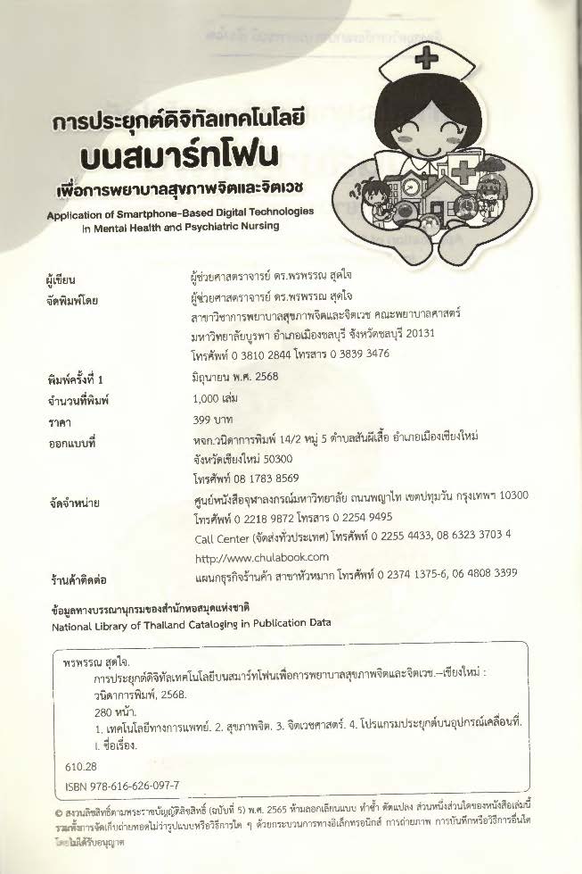 สำนักพิมพ์: สาขาวิชาการพยาบาลสุขภาพจิตและจิตเวช คณะพยาบาลศาสตร์ มหาวิทยาลัยบูรพา