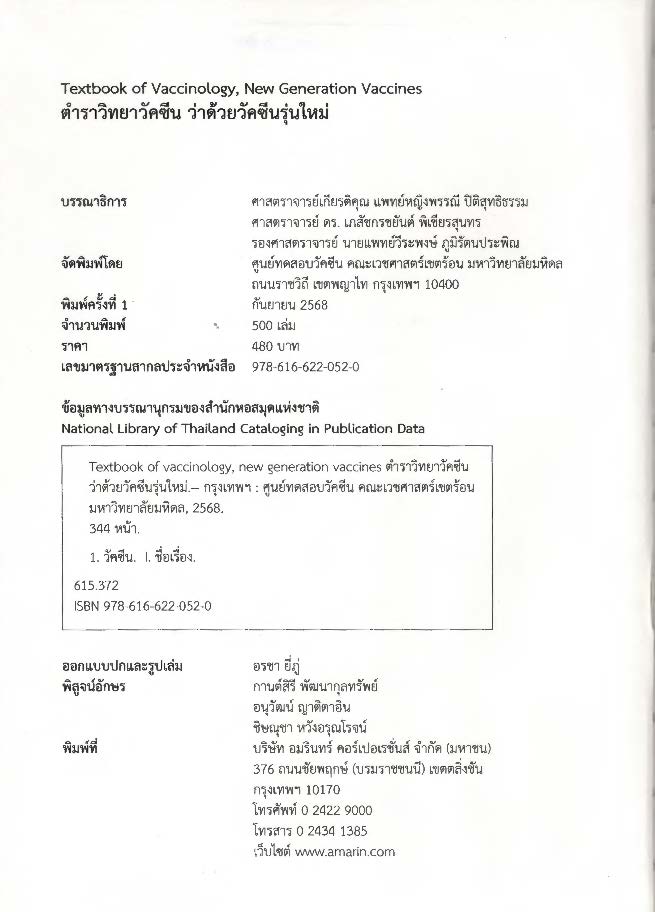 สำนักพิมพ์: ศูนย์ทดสอบวัคซีน คณะเวชศาสตร์เขตร้อน มหาวิทยาลัยมหิดล