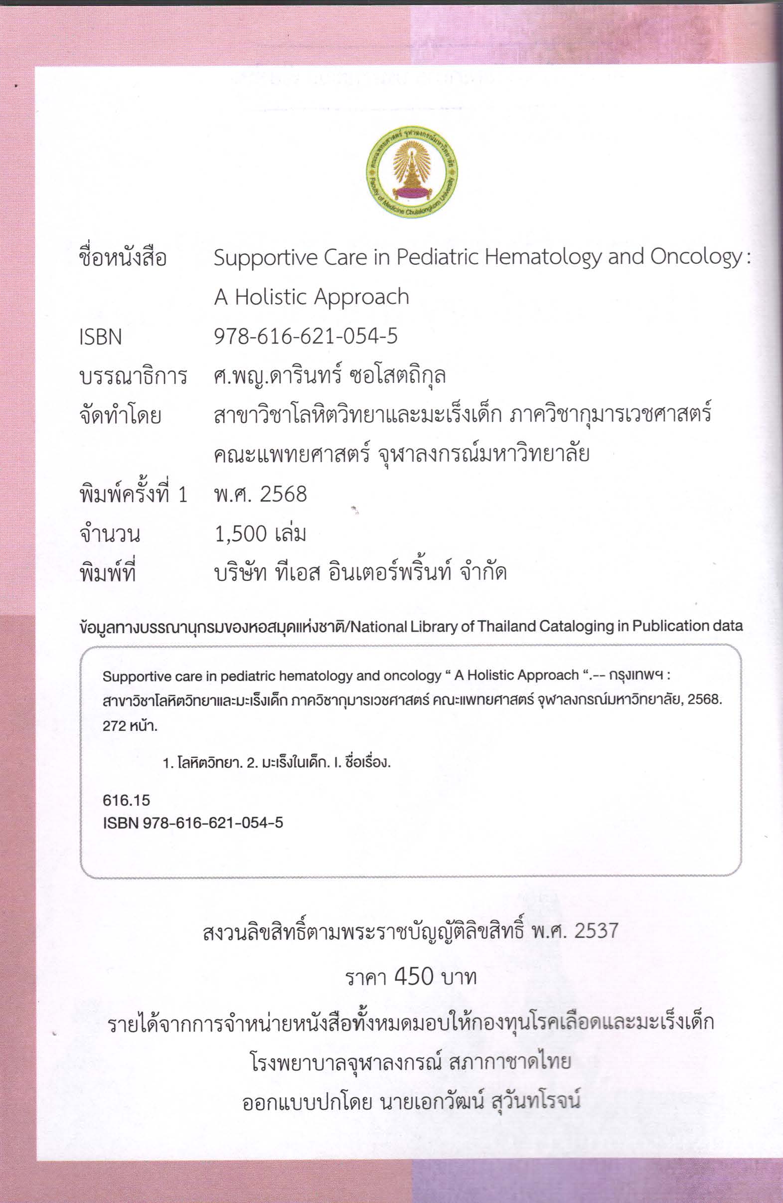 สำนักพิมพ์: สาขาวิชาโลหิตวิทยาและมะเร็งเด็ก ภาควิชากุมารเวชศาสตร์ คณะแพทย์ศาสตร์จุฬาลงกรณ์มหาวิทยาลัย